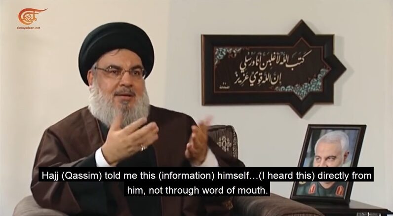 Description: Hezbollah Secretary General Sayyed Hassan Nasrallah recounts how assassinated Iranian General Qassim Soleimani held a two-hour long meeting with Russian President Vladimir Putin and … Continue reading Nasrallah: ‘It was Iran’s Soleimani who convinced Putin to enter Syria war’